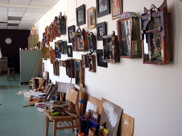 On the wall are my completed assemblages and on the floor is work in progress.